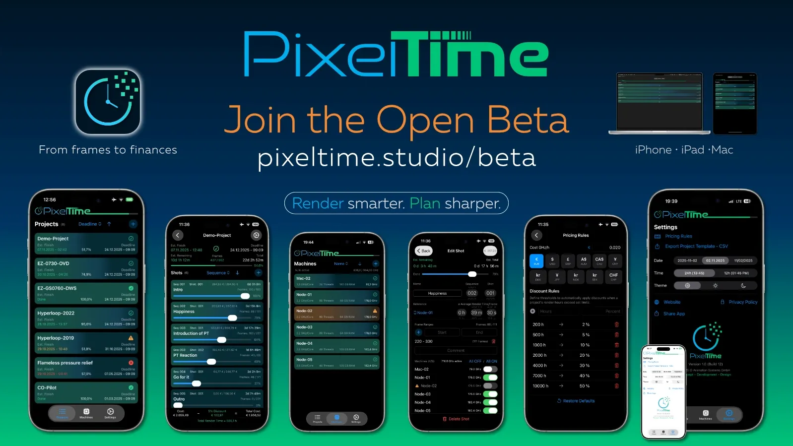 PixelTime ist jetzt im App Store: Echtzeit-Transparenz für deine Renderfarm – Jobs,…